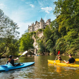 Explorez la vallée de la Lesse en VTT et kayak ! Commencez la matinée par une randonnée VTT de deux heures de Anseremme à Gendron, avec des circuits adaptés au niveau du groupe. L’après-midi, descendez la Lesse en kayak biplace sur 12 km, une aventure de deux heures et demie. Une activité sportive parfaite pour les amateurs de vélo !